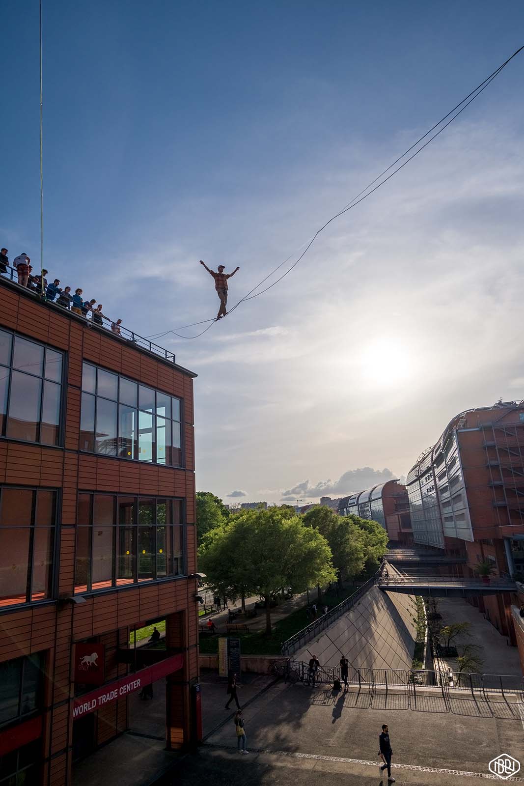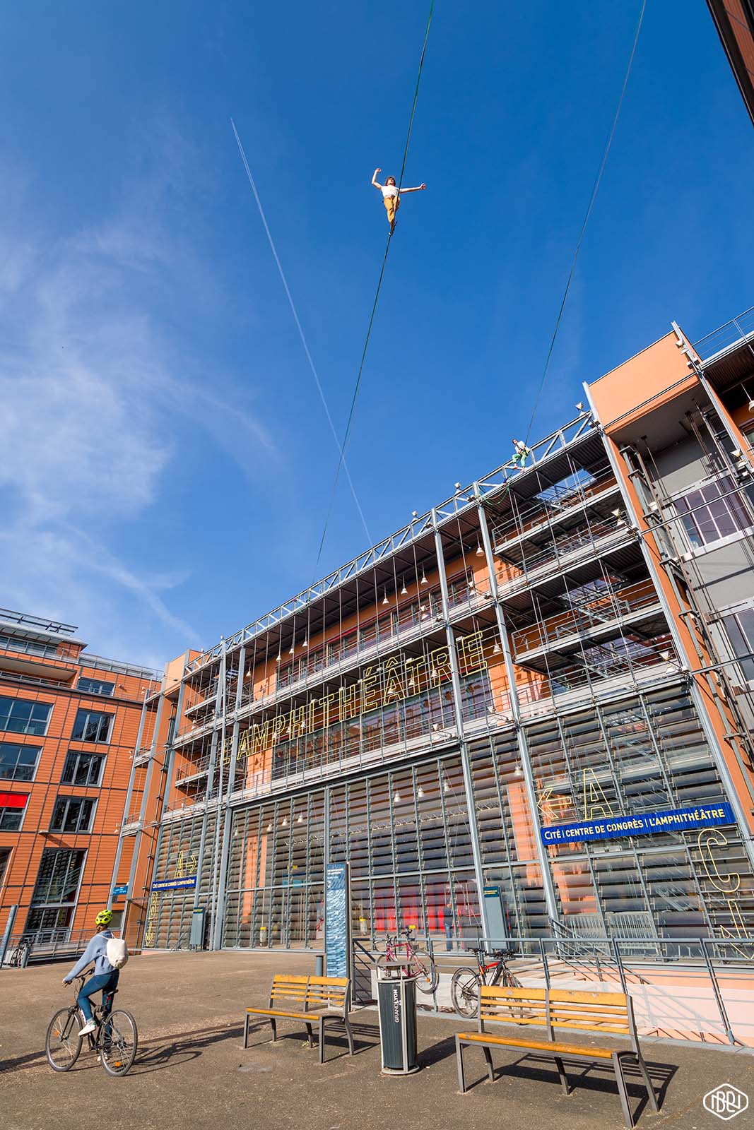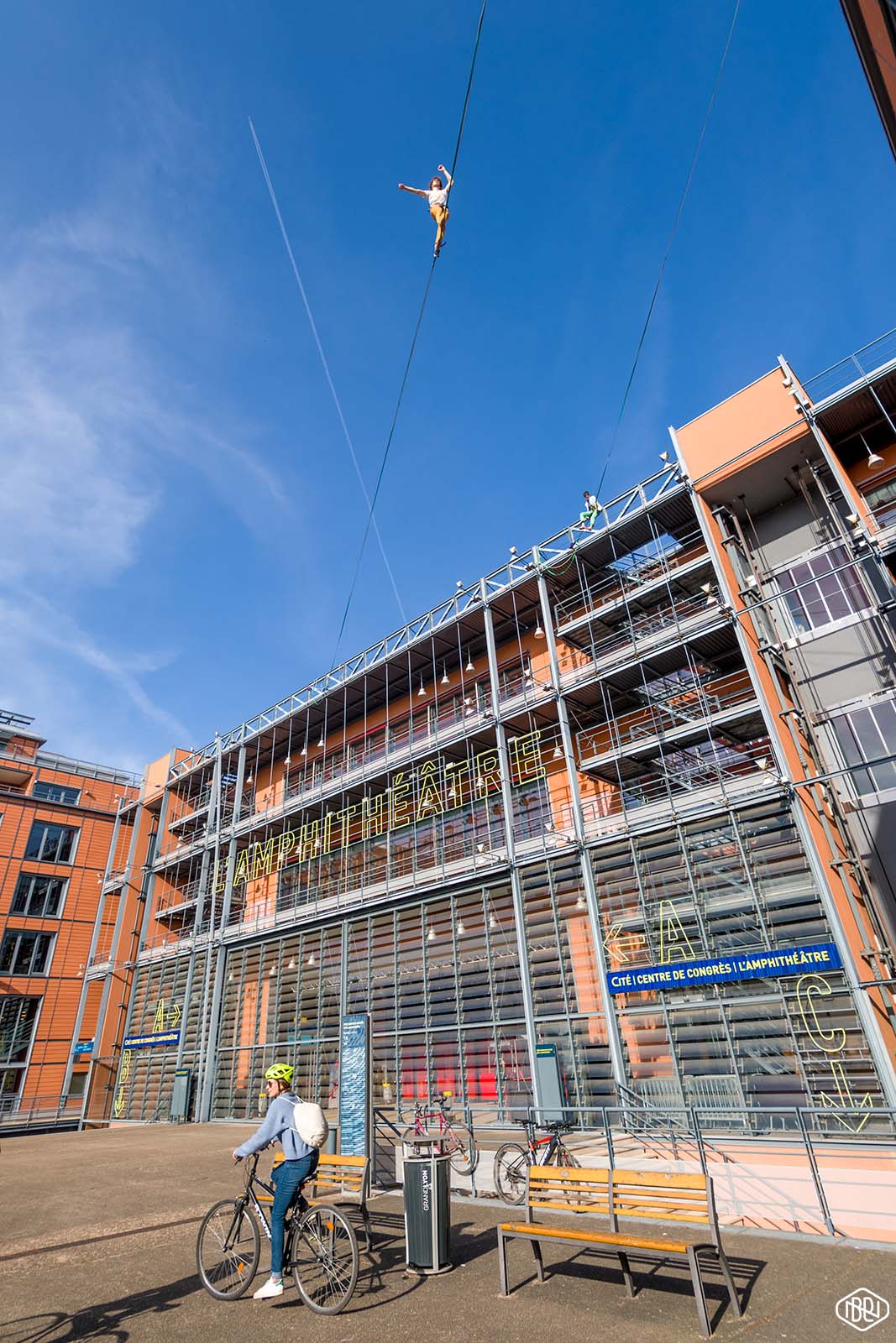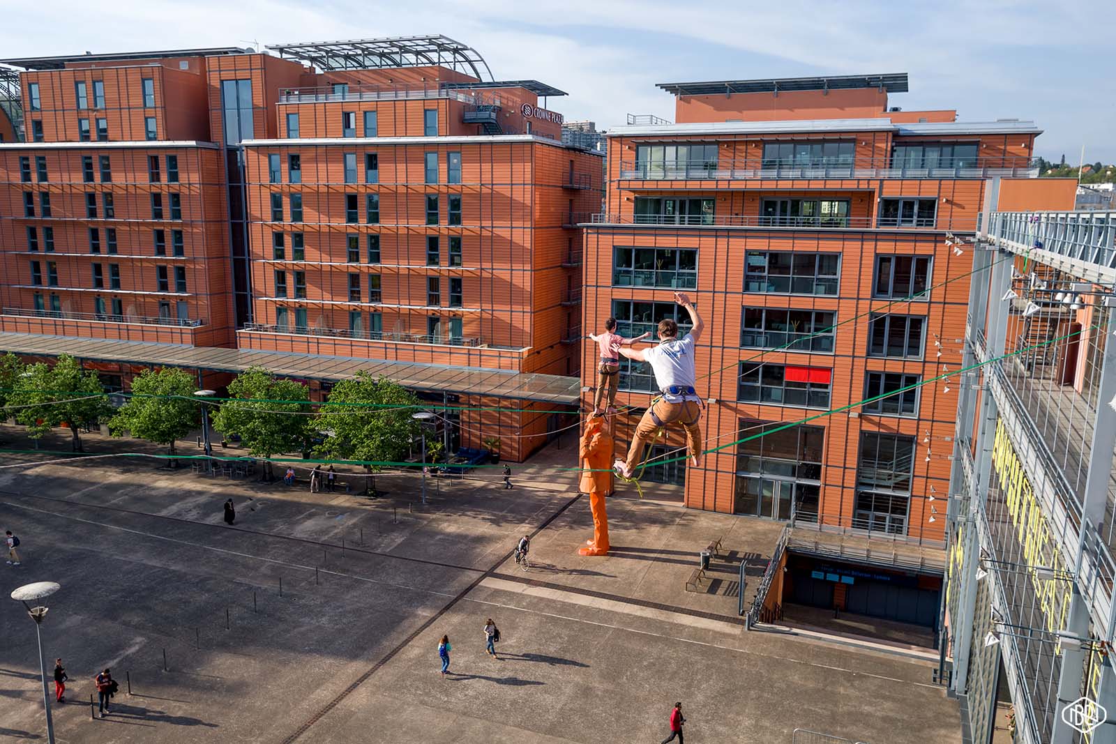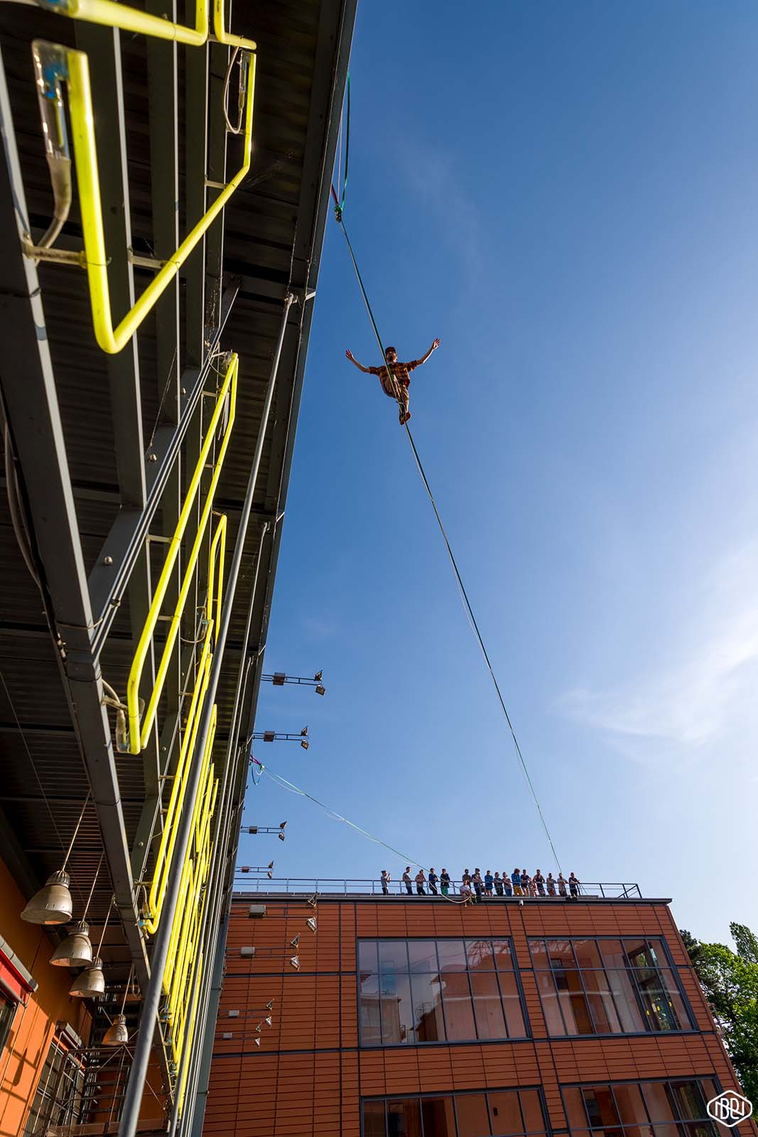 Pour une deuxième année, le Centre des Congrès de Lyon nous a permis d’installer nos sangles sur le toit de l’Amphithéâtre 3000. Deux lignes urbaines de 25 et 45 mètres, sur lesquelles une vingtaine de membres de l’asso ont eu l’opportunité de pratiquer notre sport dans un tout autre décor. Un cadre urbain fait de verrières, de passants et de béton qui nous change fortement des montagnes où nous côtoyons habituellement les arbres, le caillou et si peu de monde !