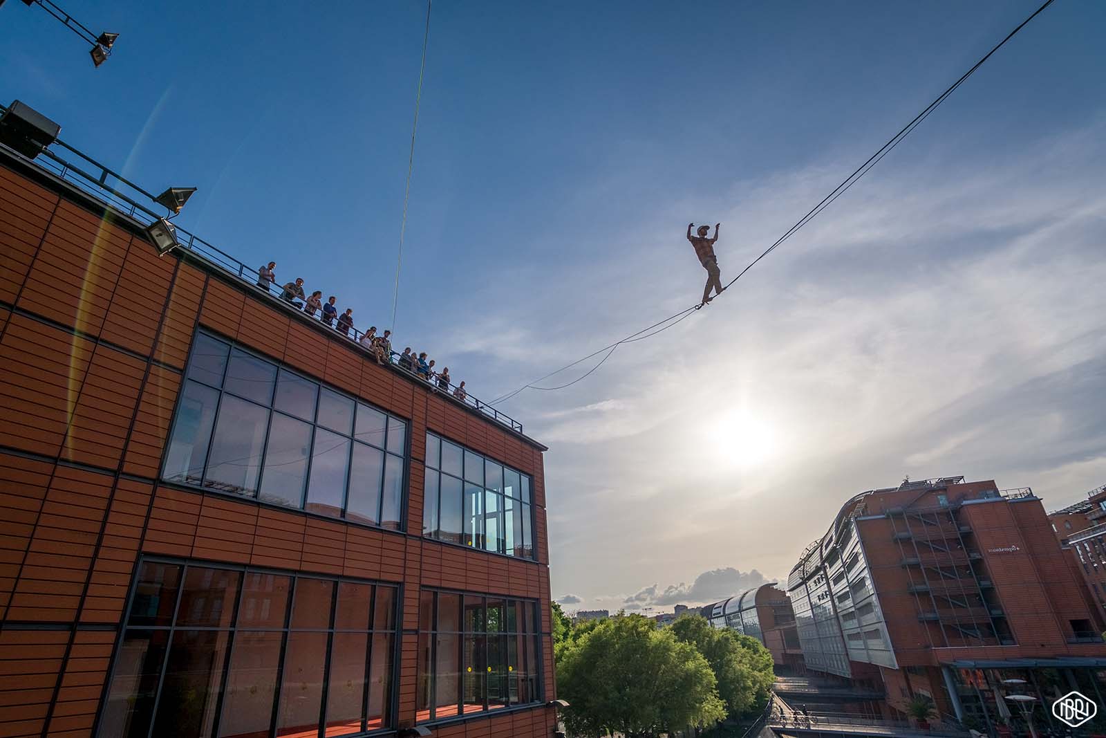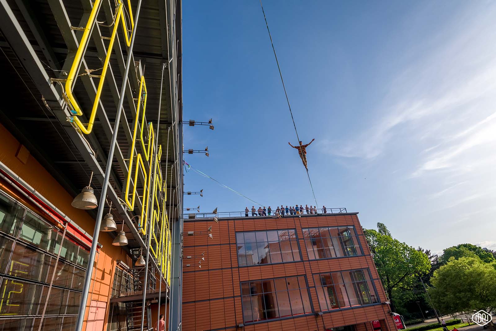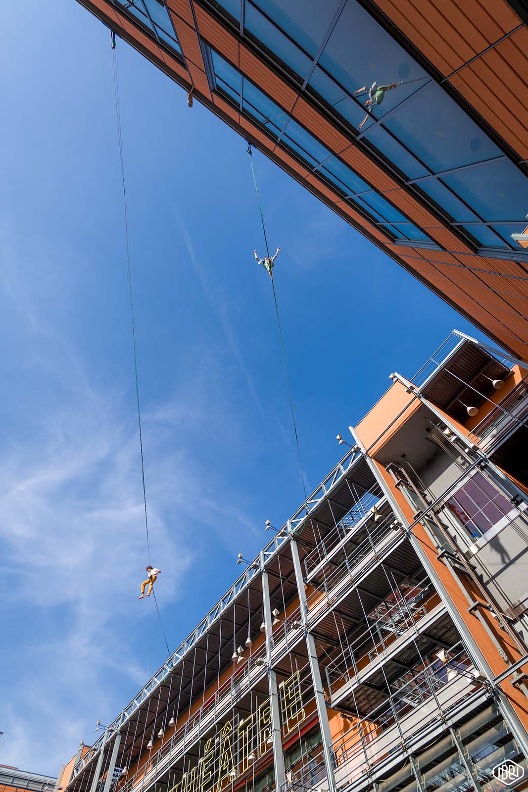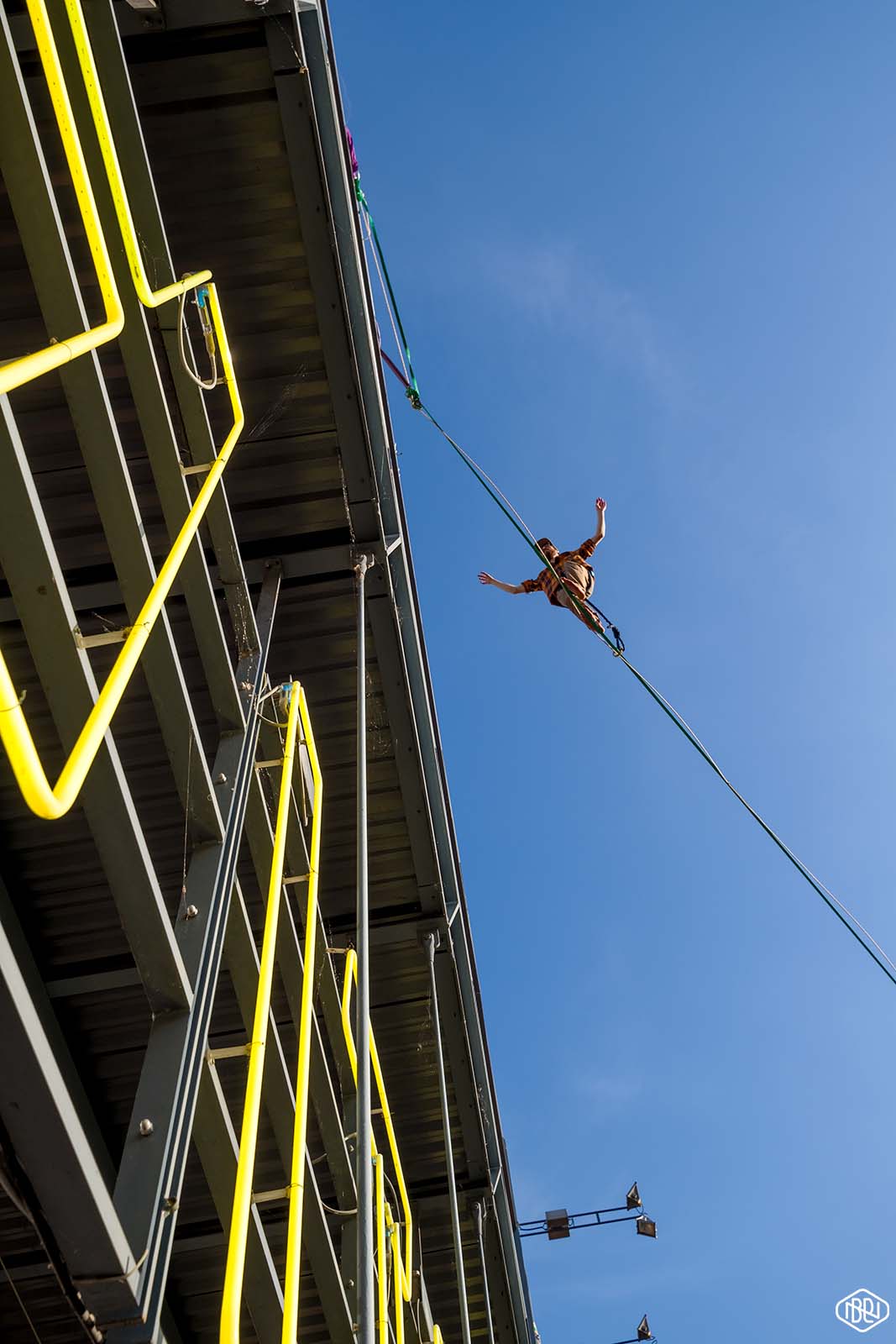 Pour une deuxième année, le Centre des Congrès de Lyon nous a permis d’installer nos sangles sur le toit de l’Amphithéâtre 3000. Deux lignes urbaines de 25 et 45 mètres, sur lesquelles une vingtaine de membres de l’asso ont eu l’opportunité de pratiquer notre sport dans un tout autre décor. Un cadre urbain fait de verrières, de passants et de béton qui nous change fortement des montagnes où nous côtoyons habituellement les arbres, le caillou et si peu de monde !